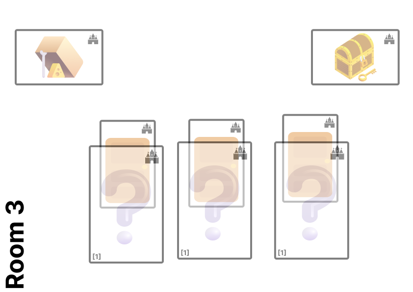 In each room there are mystery cards blocking access to the doors. Players must turn them over as they enter the room. These are often monsters to face, but can also be events to solve.