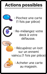 To fight monsters, you need to use the cards in your deck. Attacks require a resource (energy for warriors, mana for mages) to be played. Once the player has emptied his deck, his turn is over. His opponent starts his turn.